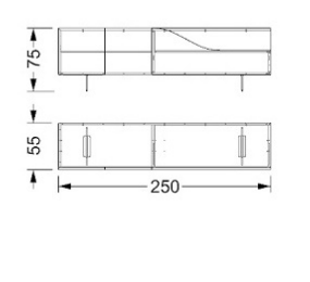 Sidebaord in shiny lacquered wood or in Henné oakwood. Equipped with 1 folding door and 1 or 2 doors. Open section in same finish as the structure or in satin brass or titanium finish, in Canaletto walnut or covered in lacquered or etched lacquered glass or in smoked mirror. Optional LED lighting.