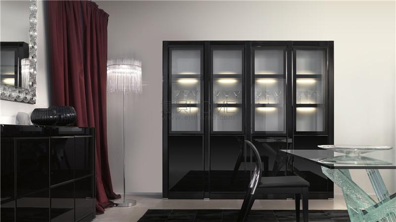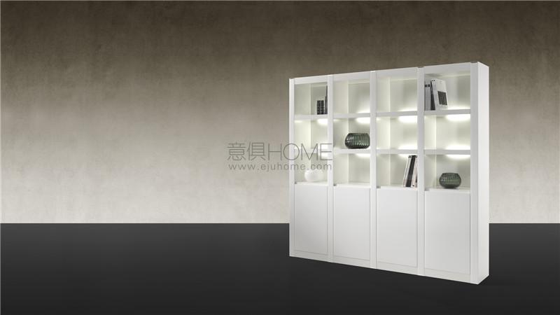 Modular bookcase in shiny lacquered wood with applications in bevelled lacquered glass on the fronts, or in shiny ebony wood. Backs available in white lacquered glass, Antique mirror or in Marble glass. Optional lighting system.