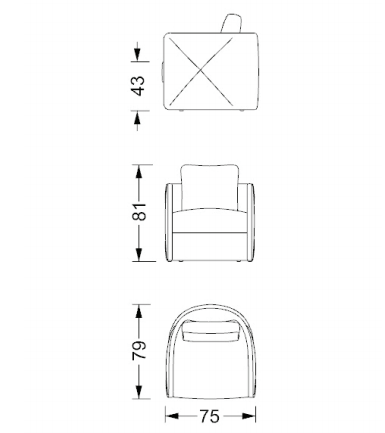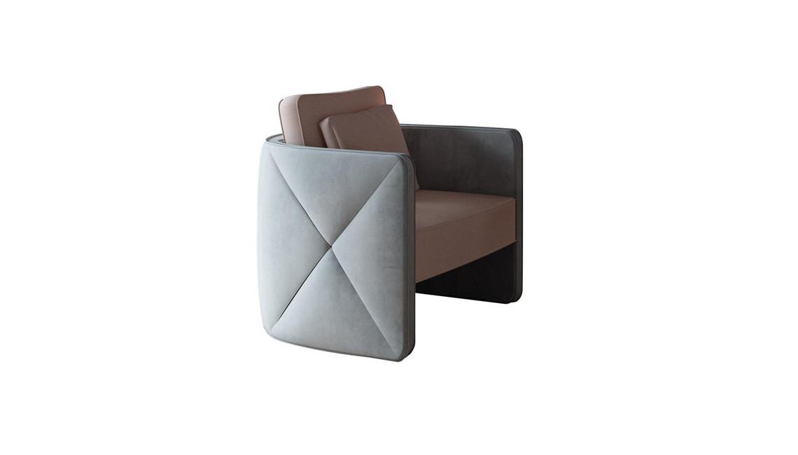Armchair with polyurethane foam padding of different densities and internal wooden structure. Diamond convex details on the sides created by the crossed stitching and double piping all around the chair. Back cushion in goose feather with rigid polyurethane insert. Upholstery available in leather, fabric or velvet also combined together.