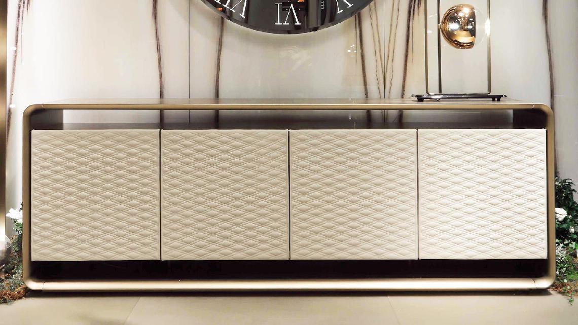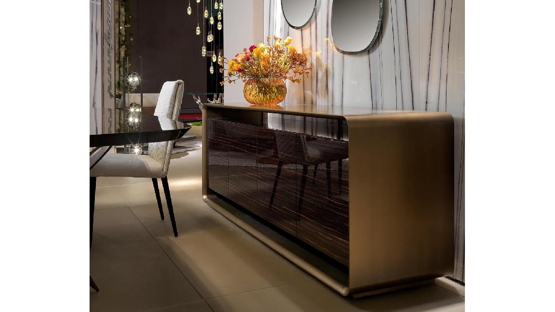 Sideboard with structure in shaped rounded wood in the satin metallic finishes.