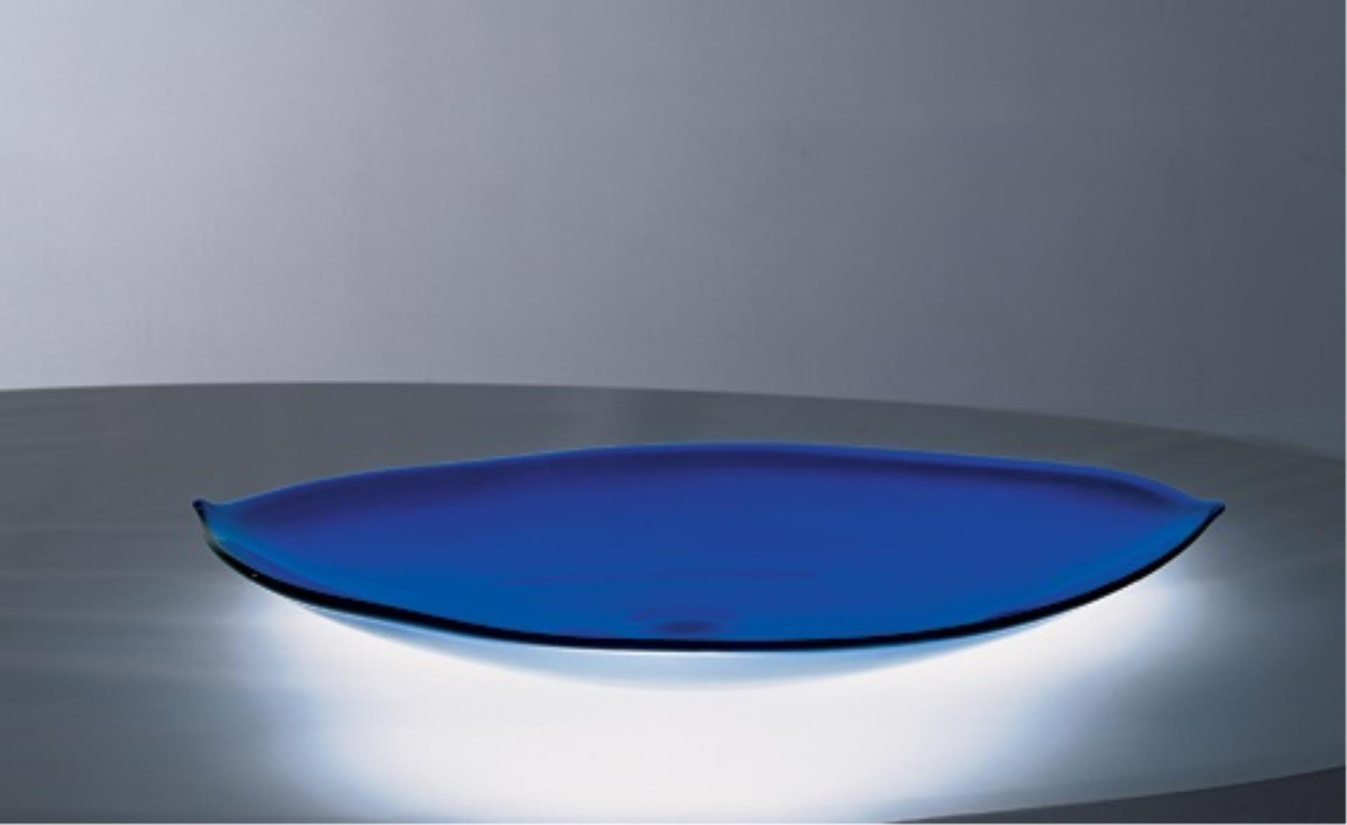 Plate/fruit-dish in Murano glass available in transparent, red, blue or green.