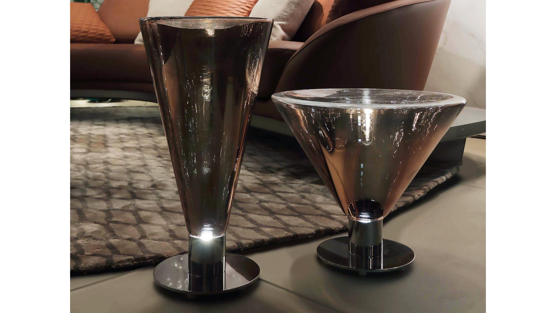 The Accademia collection, born with the tables, is enriched with pendant and table lamps, presented here in the copper finish.