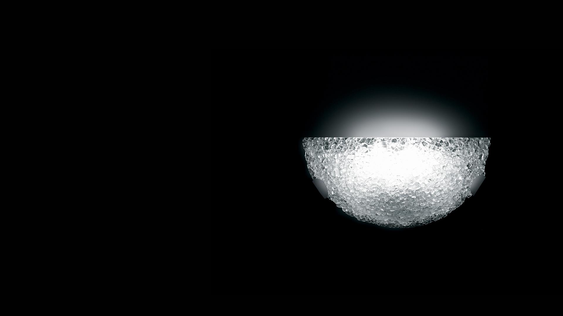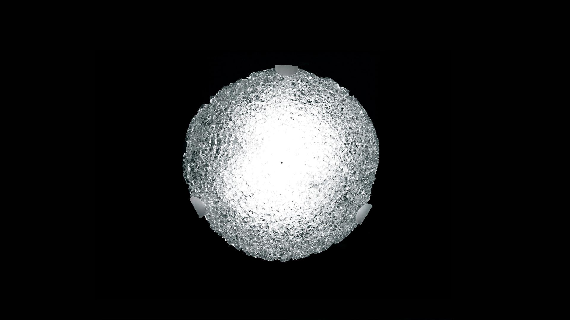 Wall and ceiling lamps in extra clear craquelé glass. White lacquered metal supports. LED lighting. (6W E27 110-240V 2700/3000K)