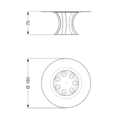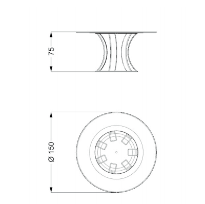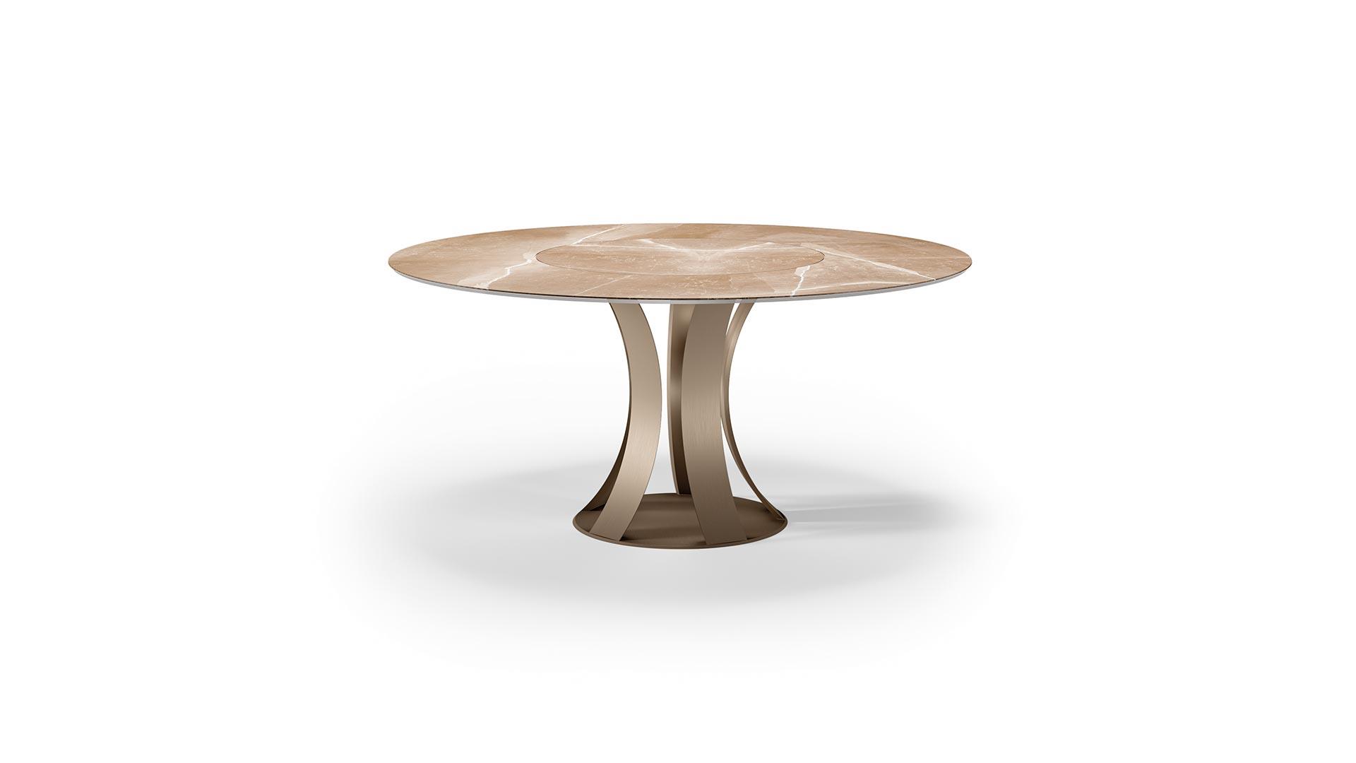 Dining table with base composed by curved legs and bottom disc in extra clear with Bronze or SunbronzeTop with built-in Lazy Susan in Marble glass 4+10mm thick, Wing edge.