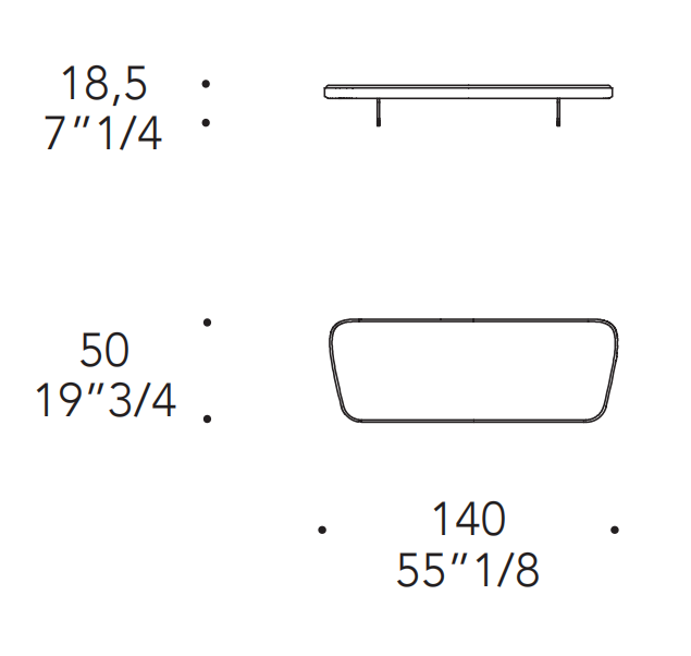 Piedini in metallo finitura satinata ottone (104M) o titanium (101M).