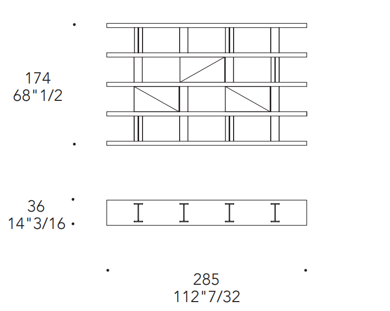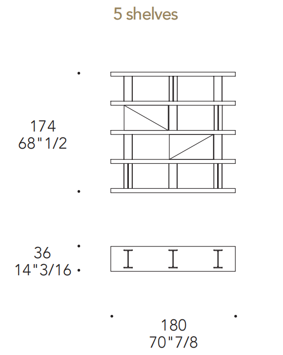 Ripiani in Bronze (100M), ottone (104M), ottone dark (105M), titanium (101M).