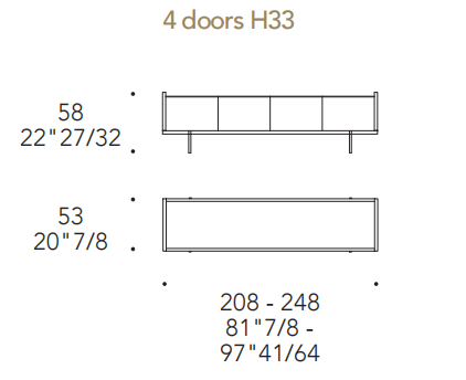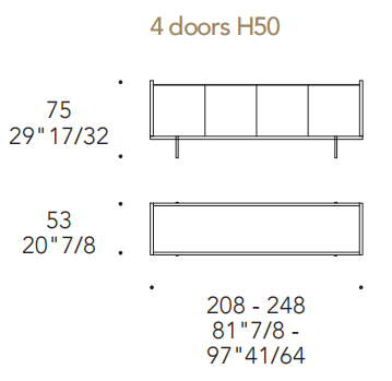 Buffet low con struttura in Legno Noce canaletto, Noce Canaletto Hennè, nelle finiture metalliche satinate o nelle finiture laccate Venezia.