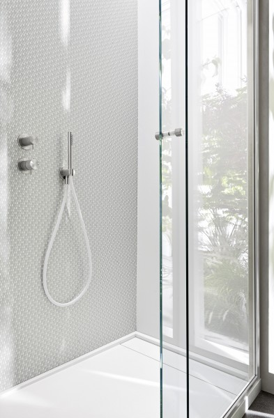 Una geometria nitida definisce la vasca Unico squadrata in Corian, disponibile in tutti i colori a listino. Può essere accessoriata con tutti i sistemi benessere.
