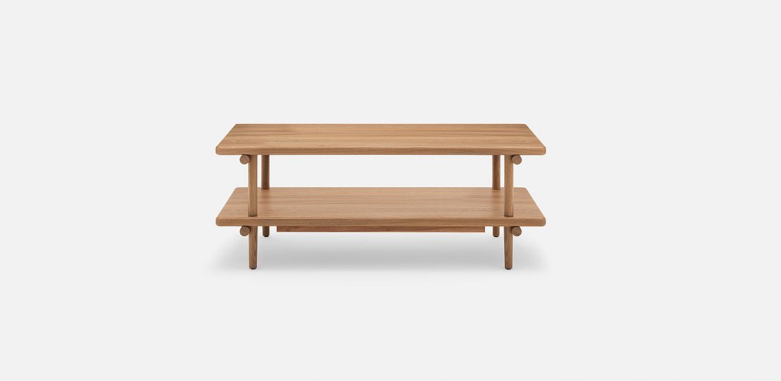 Interlocking table/add-on table/shelving coordinating with the 530 VOLO range. The interlocking tables/add-on tables can be connected as intermediate elements or positioned free-standing of the sofa. The shelving can be positioned to the rear or to the side of the sofa.