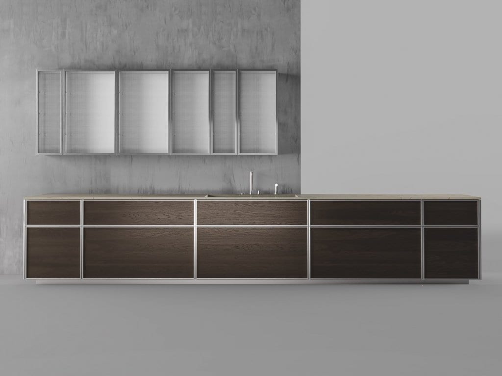 I contenitori sono previsti in due diverse volumetrie: a terra, con zoccolo basso, e sospesi, con ante realizzate in affinità ai criteri costruttivi della cucina industriale, formati da telai in acciaio a grande spessore, a cui si aggiunge un’ampia scelta di materie e di abbinamenti per le foderine di chiusura. Il design supera l’estetica minimalista e l’immagine tecnica delle cucine industriali, regalando un prodotto dalle qualità costruttive e funzionali senza compromessi e dai grandi contenuti tecnologici. Originale e innovativa, TK38 fornisce una precisa risposta alle reali esigenze d’uso, un prodotto contemporaneo senza tempo.