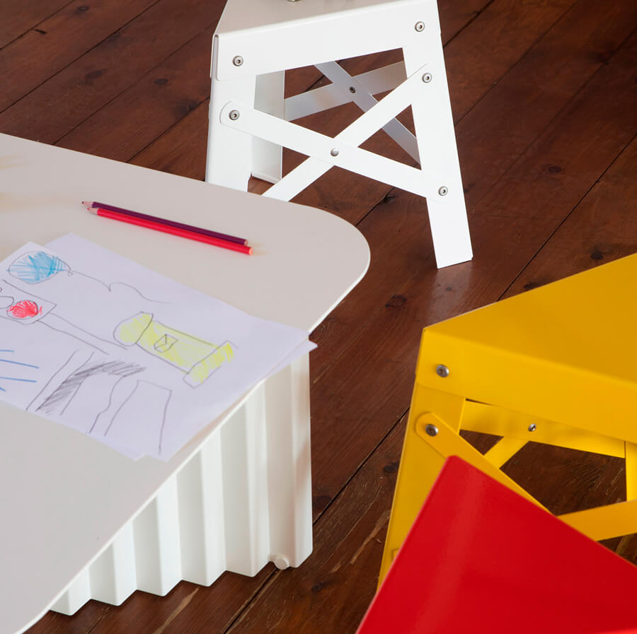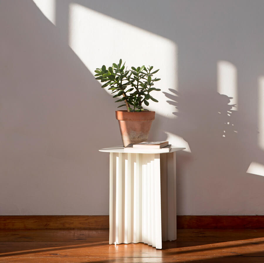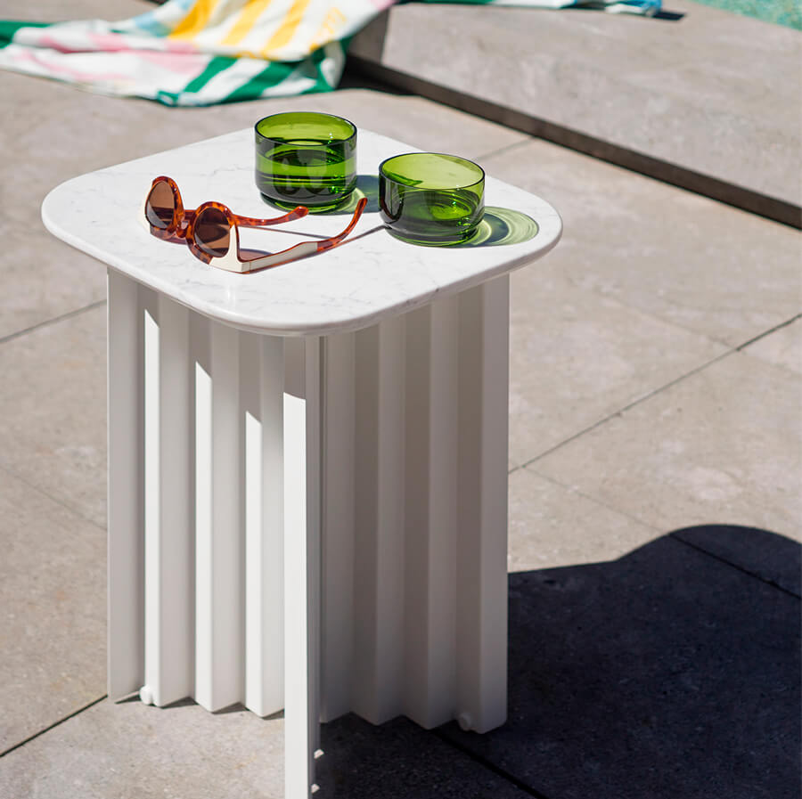 The Plec table collection fits stylishly into any setting and space, whether as a coffee table in front of the sofa, as a corner table in a reception area or waiting room, or in your garden surrounded by plants and flowers. Because the Plec table is also suitable for outdoor use thanks to the cataphoretic coating process applied to the steel.