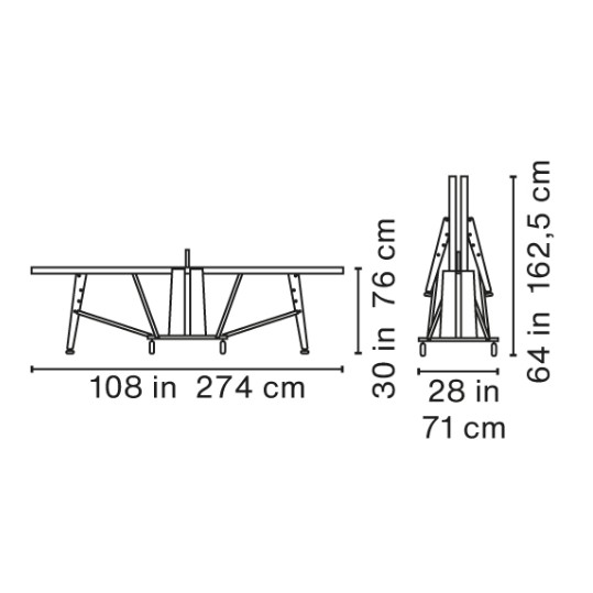 The RS Folding ping pong table has standard ping-pong table measurements, while its surface, design and structure provide total playability, stability and toughness. Just like a professional ping pong table.