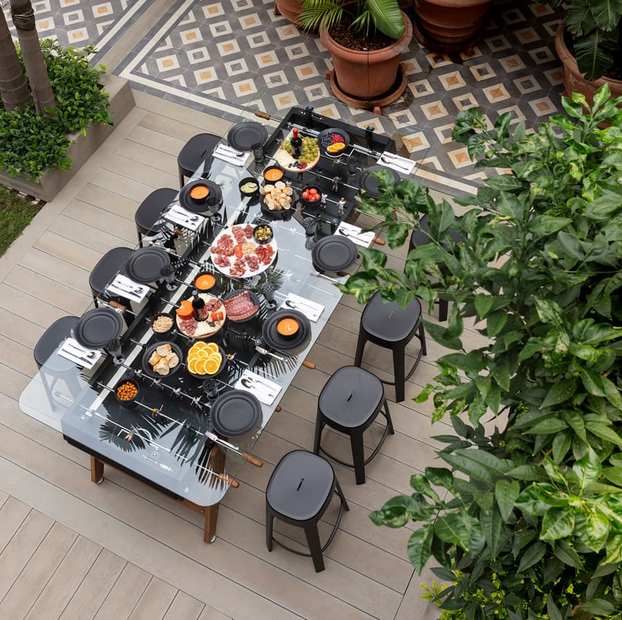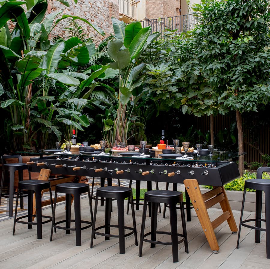 With a height of 100 cm (39.4 in), it’s a tall table that will be the centre of attraction wherever it stands, whether in a bar, in the common area of a workplace, in the games room of a private dwelling or on a porch. Accompanied by a set of counter-height stools (76 cm / 30 in), it creates the perfect setting for meetings and maximum fun around the table.
