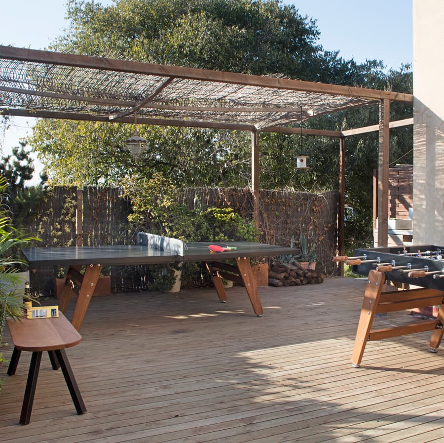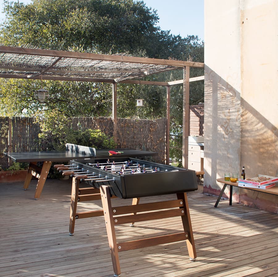 It’s the ping pong version of our RS3 Wood football table, inspired by the idea of creating a playmate for our football table fitted with wooden legs. They make a perfect couple, sharing a striking design with strong lines and real presence. But this ping pong table has bags of personality in its own right.