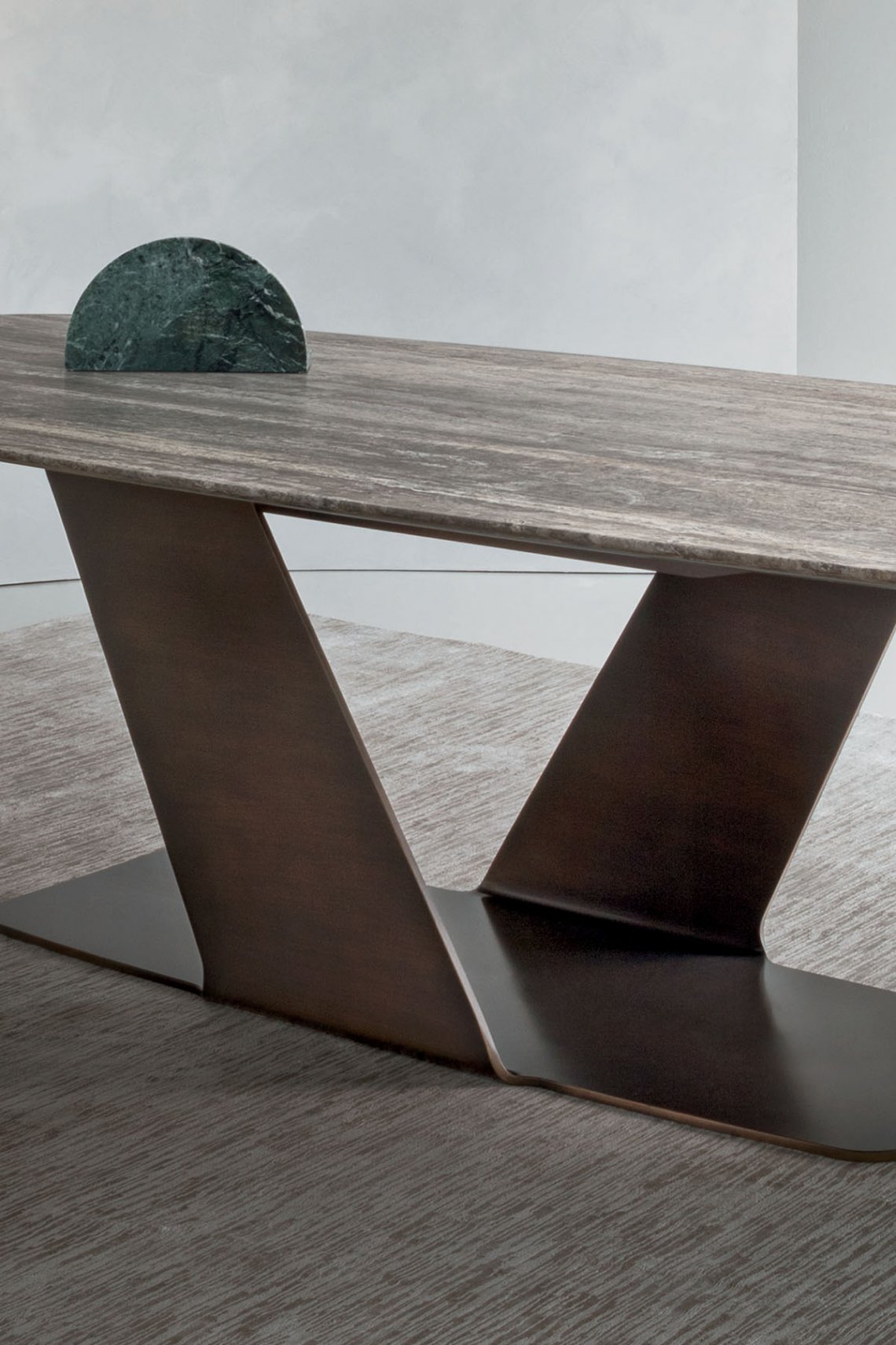 熟練的施工技術與設計相結合,創造出由不同類型的天然石材臺面和獨特的 Rugiano 裝飾豐富的雕塑底座。