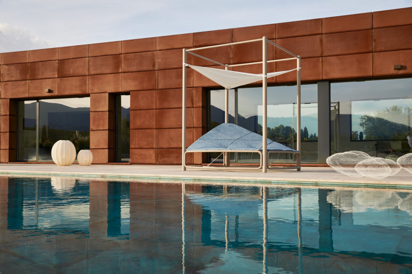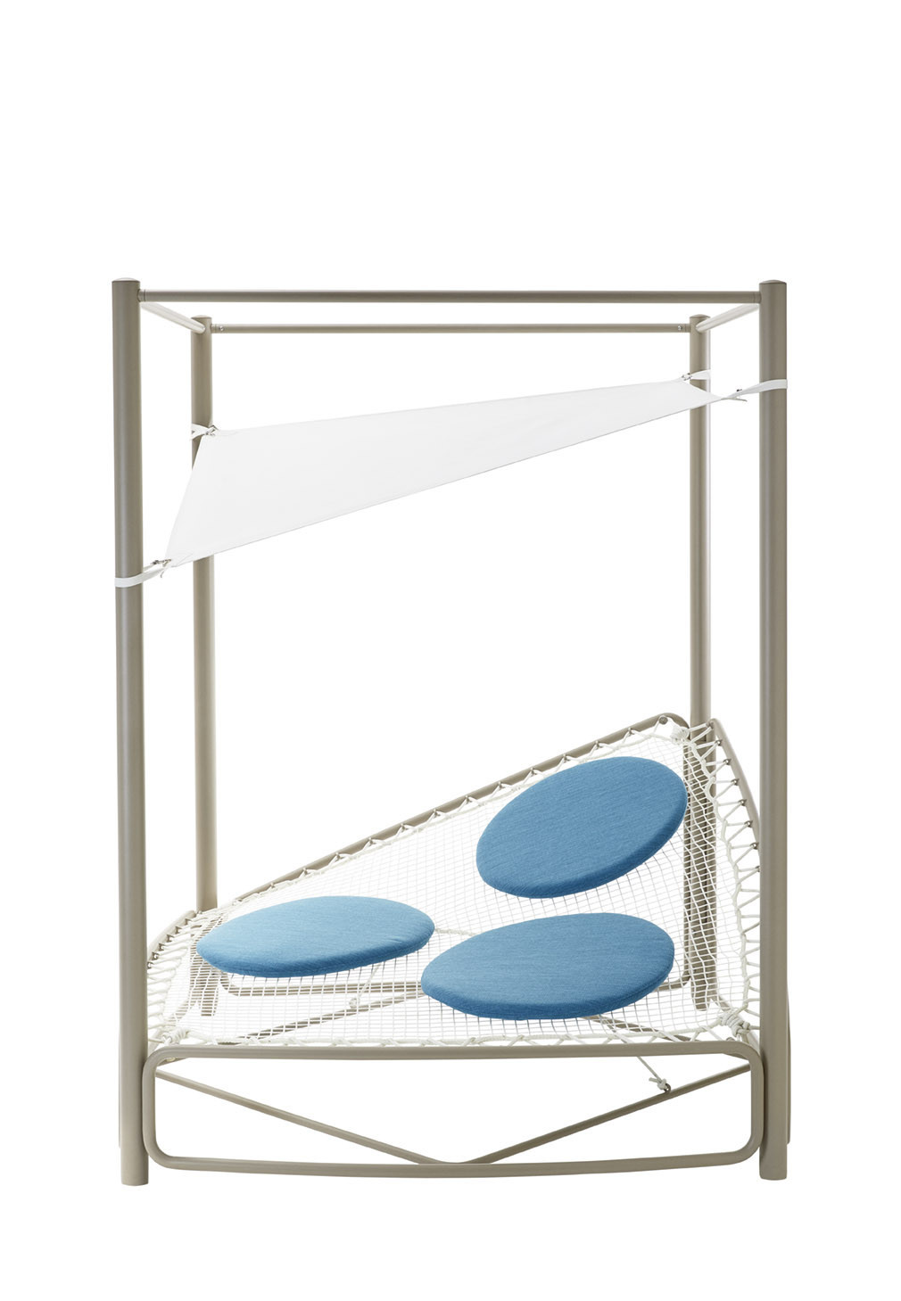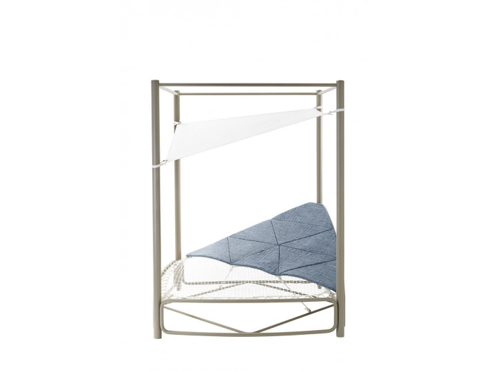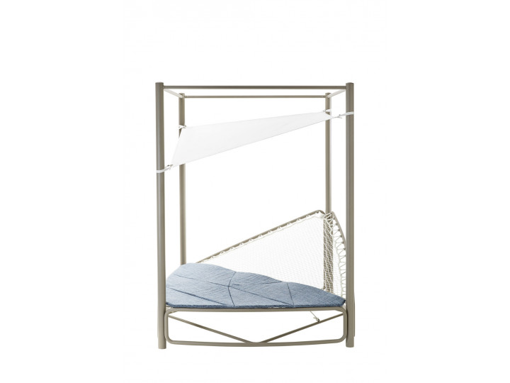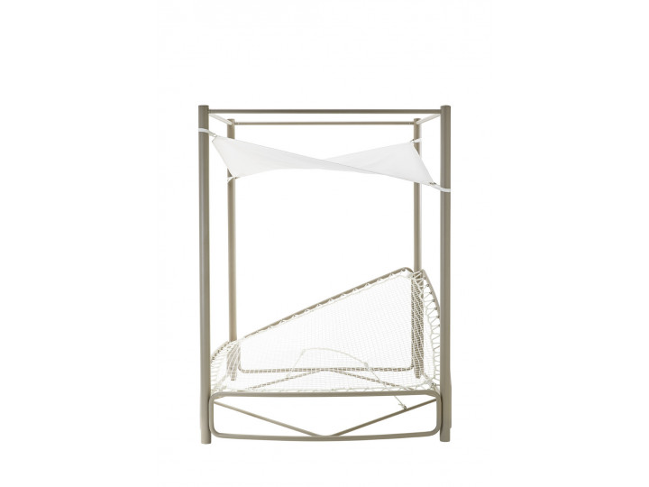 Lounger rotondo a baldacchino in acciaio 304 verniciato a polveri, cielino in Batyline, corde decorative in Round Trendyrope. Un elemento dal design unico ed eccezionale, capace di rivoluzionare gli ambienti outdoor: un vero e proprio nido racchiuso in un gioco di corde dalle sfumature sapientemente mixate. La seduta ampia e circolare lo rende perfetto per trascorrere momenti di relax in giardino o a bordo piscina, mentre il cielino in Batyline offre una delicata ombra dai raggi più intensi del sole.
