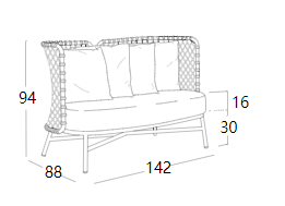 Divano in acciaio 304 verniciato a polveri, intrecciato con Flat Trendyrope. Un divano accogliente, dove la particolare geometria dello schienale si coniuga perfettamente al desiderio di comfort,  creando un angolo per vivere momenti di relax. Ottimo per arredare terrazzi e patio, dona forte personalità anche alle zone living interne. Ideale per arredamenti residenziali e contract.