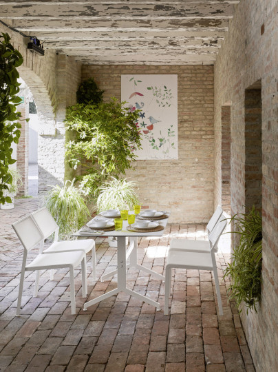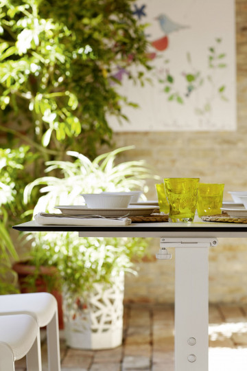 Base tavolo con colonna e crociera sotto-piano in alluminio. Verniciatura a polveri (RAL 9006). La colonna poggia su una base tonda, ideale per l’arredamento esterno di bar e ristoranti sia in situazioni contract che residenziali.