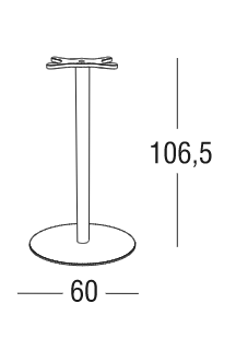 Base tavolo con colonna e crociera sotto-piano in alluminio. Verniciatura a polveri (RAL 9006). La colonna poggia su una base tonda, ideale per l’arredamento esterno di bar e ristoranti sia in situazioni contract che residenziali.