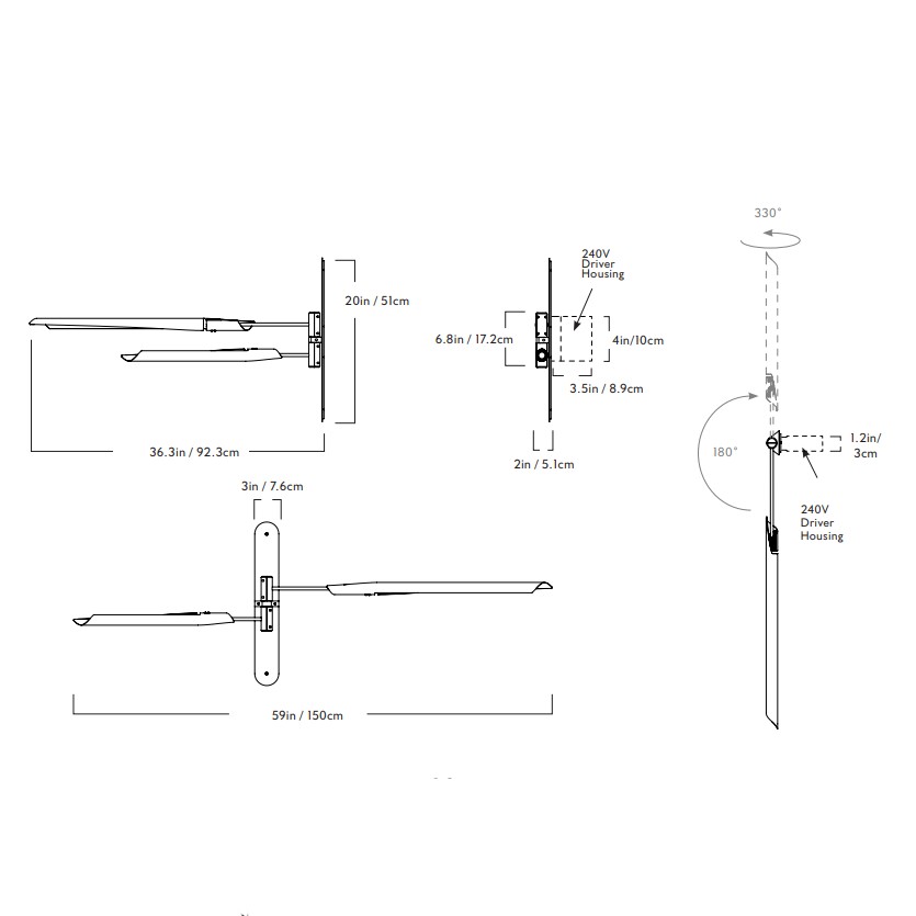 dimmable LED source and rotate to cast light directionally.