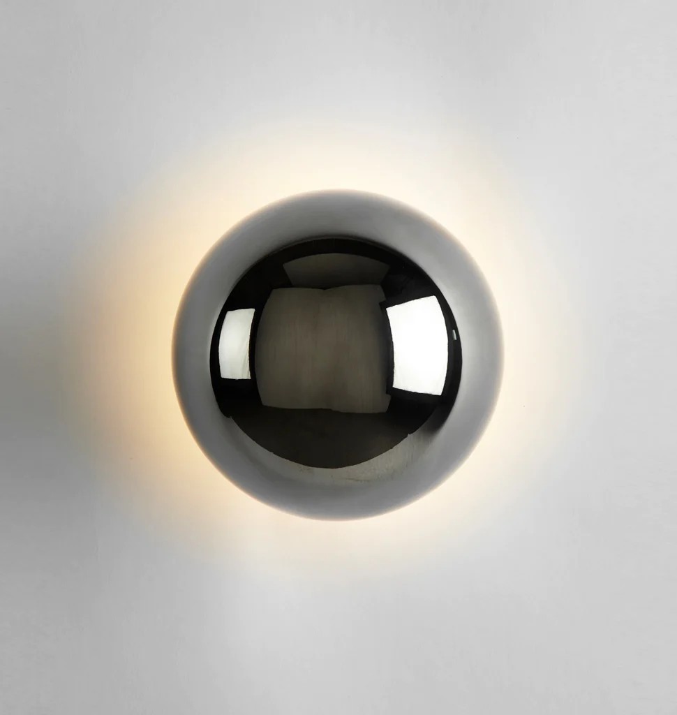 Named for its resemblance to the celestial phenomenon, this semi-spherical sconce by Philippe Malouin creates a corona of light that becomes larger and brighter as it extends from the wall.