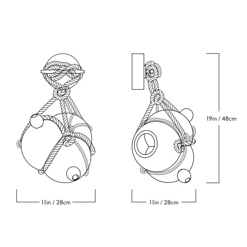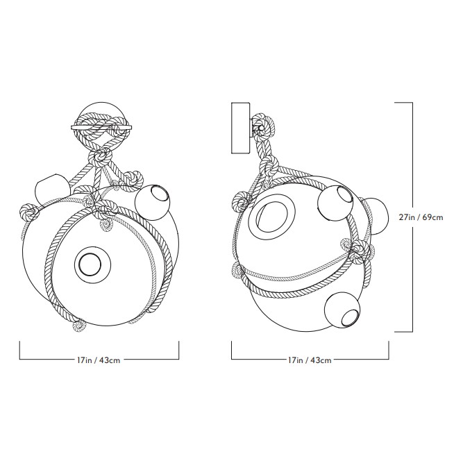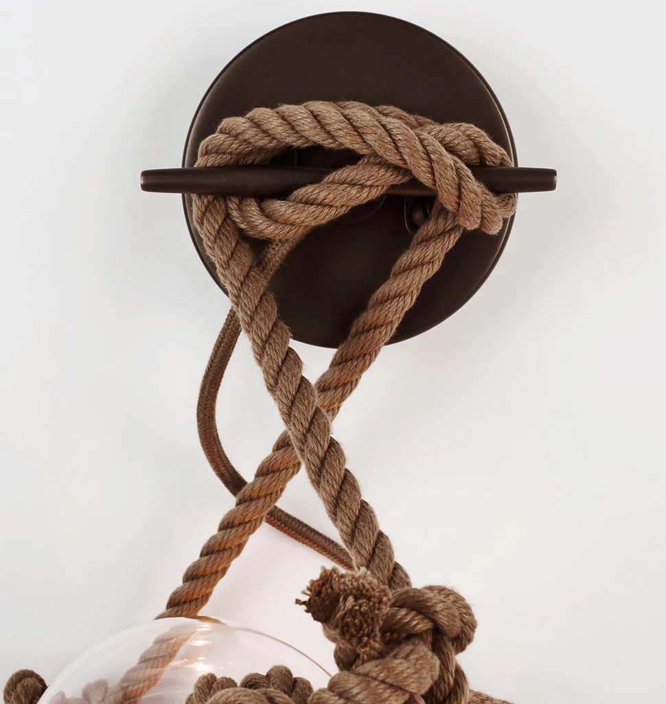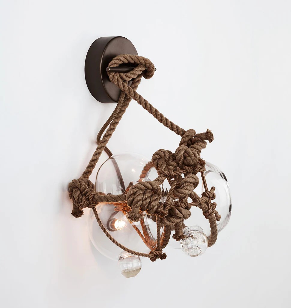Inspired by Japanese packaging, buoys, and shibari, Knotty Bubbles is a sculptural light made of hand-blown glass 'bubbles' bound together with knotted rope.