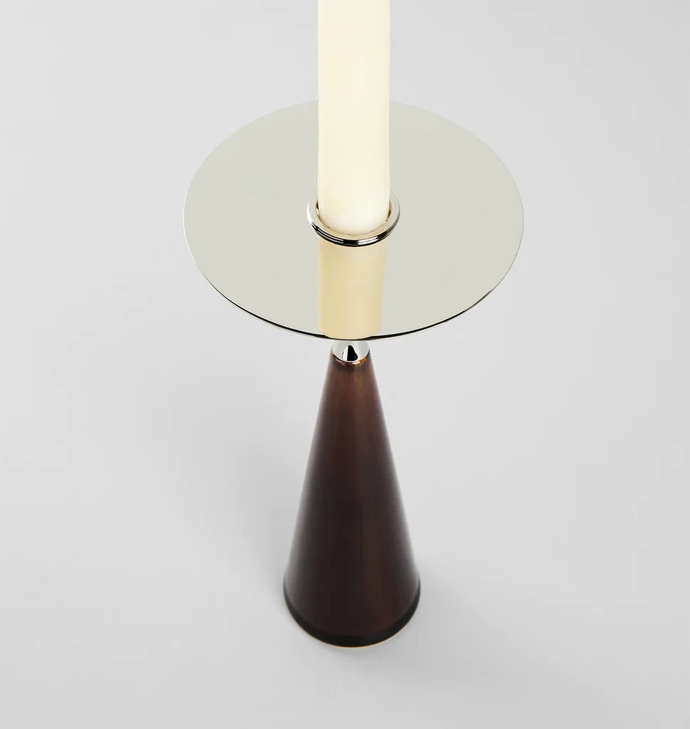 The Moor Candleholder is Jason Miller's latest exploration into the combination of ceramic and metal. The conical stoneware base blends into a trumpet-shaped aluminum top, culminating in an effortless union of contrasting materials.
