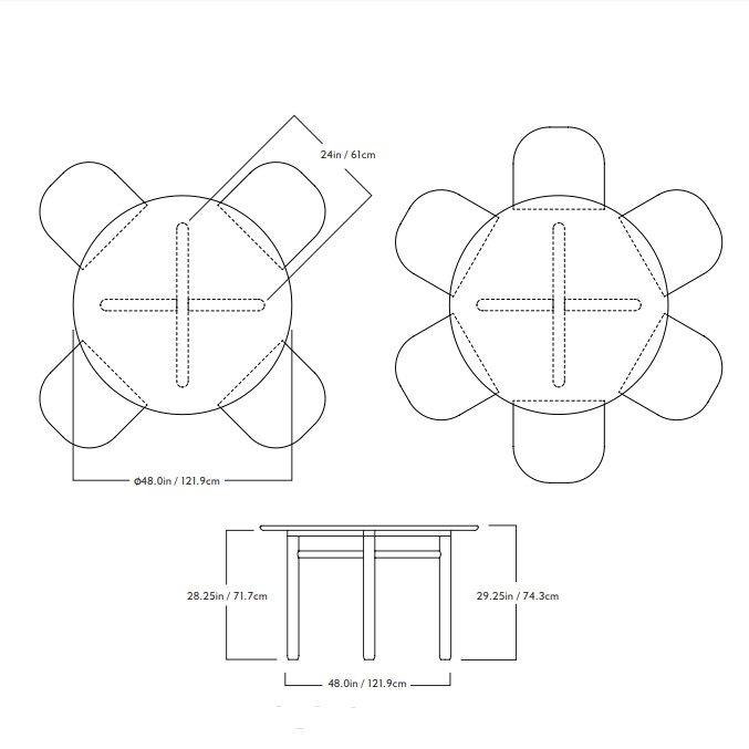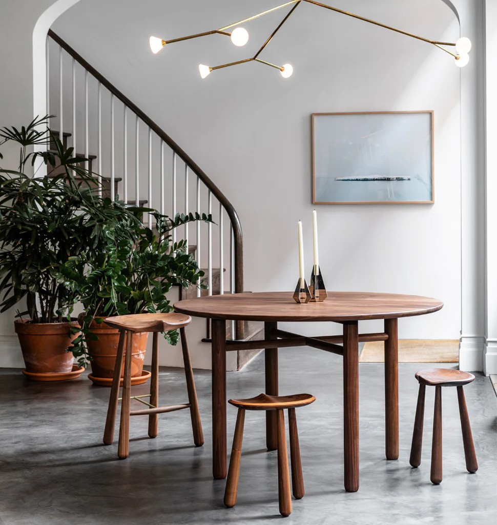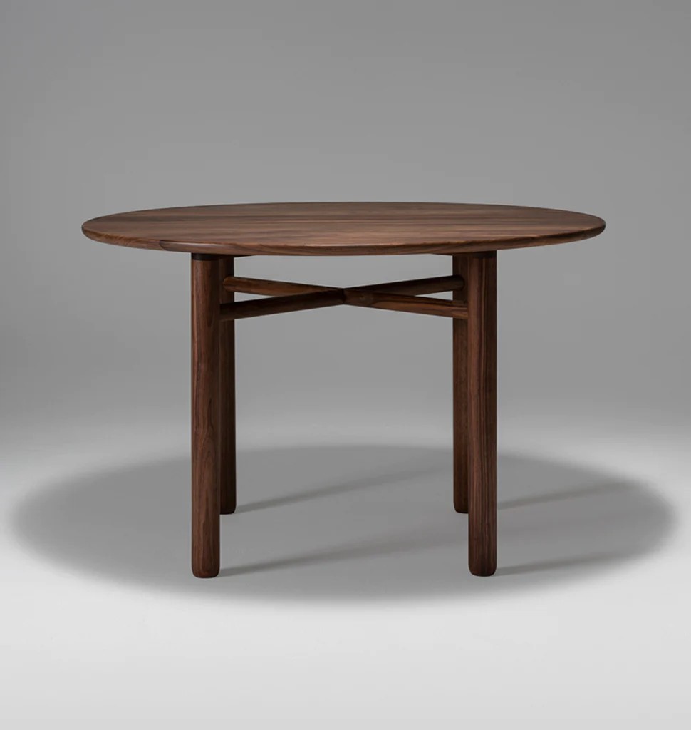 Refined and minimal, this round dining table has thickened, turned legs with a subtle, organic profile. The edge detail on the top is molded to the shape of the human hand and soft to the touch. Complex yet elegant wooden joinery gives this table a sense of craft and lightness. Campagna worked closely with Bowen Liu Studio in refining the joinery for Cross Bar Table. The final form owes much to the collaboration.