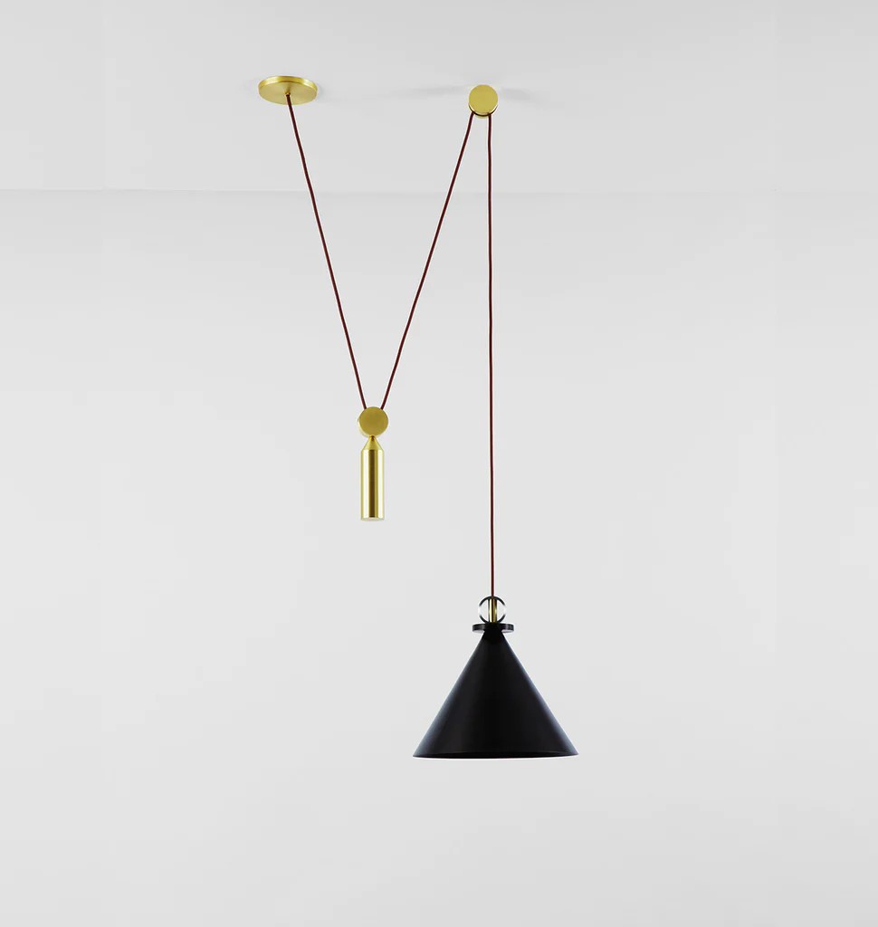 Shape Up is a versatile lighting series that celebrates bold geometric shapes: the playful juxtapositions upend traditional notions of symmetry in favor of a dynamic spatial harmony. The modular system allows the shapes to be suspended and composed in response to a space's architecture and function, its shades discreetly networked via connecting cords and hubs