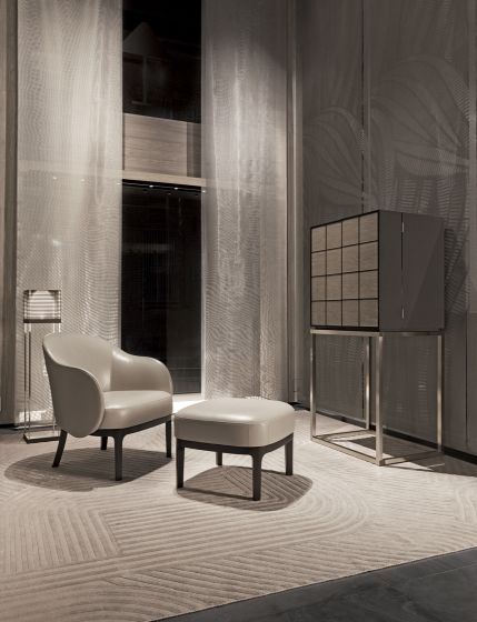 Mason is part of the Armani/Casa Collection of luxury contemporary rugs brought to you by a collaboration between Sahrai and Armani/Casa. It is a rug with an Art Déco inspired labyrinth design. The décor is created with relief and carving techniques, as well as with different quality yarns. The wool yarns create the ground where the silk yarn arises at times over the surface, to highlight the design. Density: 100 knots/square inch. The carpet is hand knotted without any child labour in:65% silk 35% wool finish.