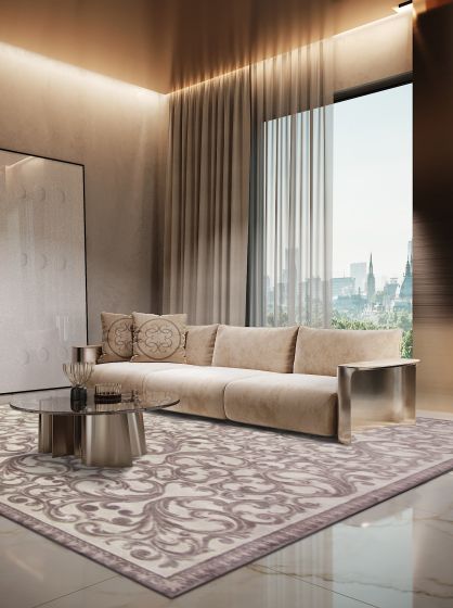 The ELIE SAAB Maison Rug Collection presents Gabrielle. Romantic decorations in pastel tones, emphasise classic lines in a modern interpretation. Created from the finest natural silk, this design features an allover brocade pattern in soft shades. The silk relief accentuates the design together with preserving the soft texture that is extremely pleasant to the touch. This design comes in handknotted finish in: