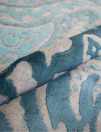 The ELIE SAAB Maison Rug Collection presents Marlene - a luxury silk rug created in collaboration with Sahrai. Created from the finest silks, this design features floral and brocade like patterns with a central medallion and four corner medallions. This rug comes in a Handknotted finish only in a choice of 2 stunning colour schemes in:Silk and Silk Relief