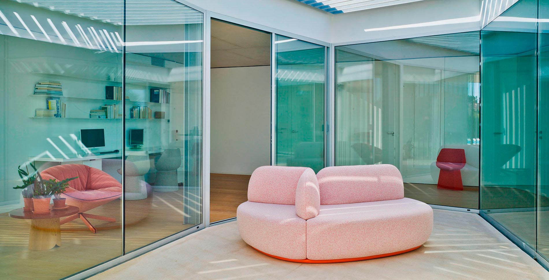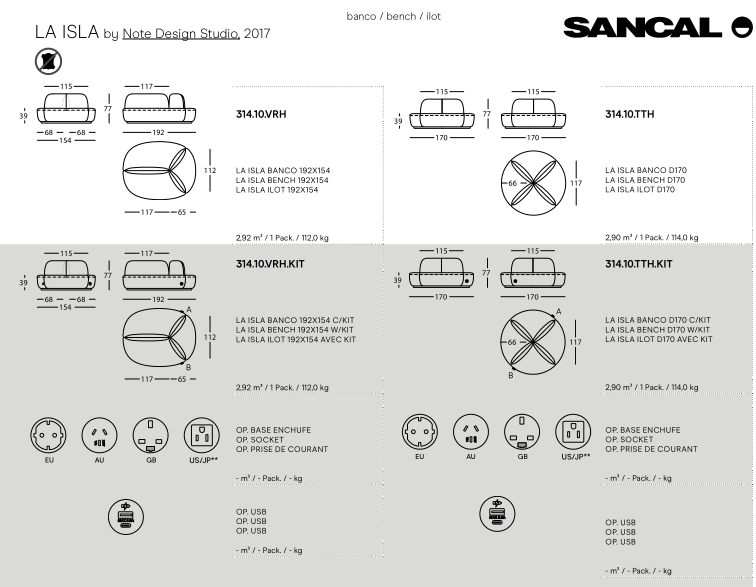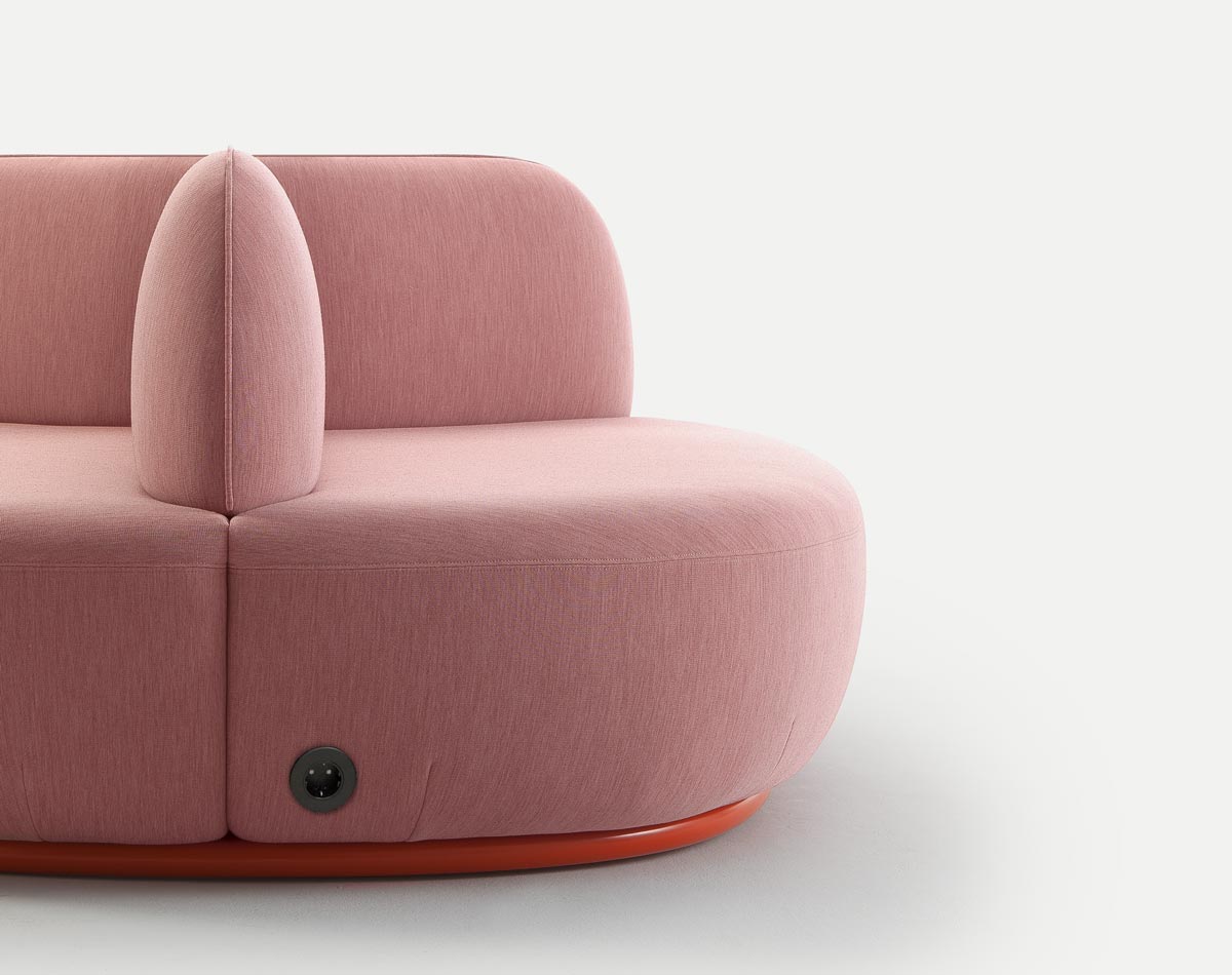 of fabrics from Sancal’s collection. The plinth can be