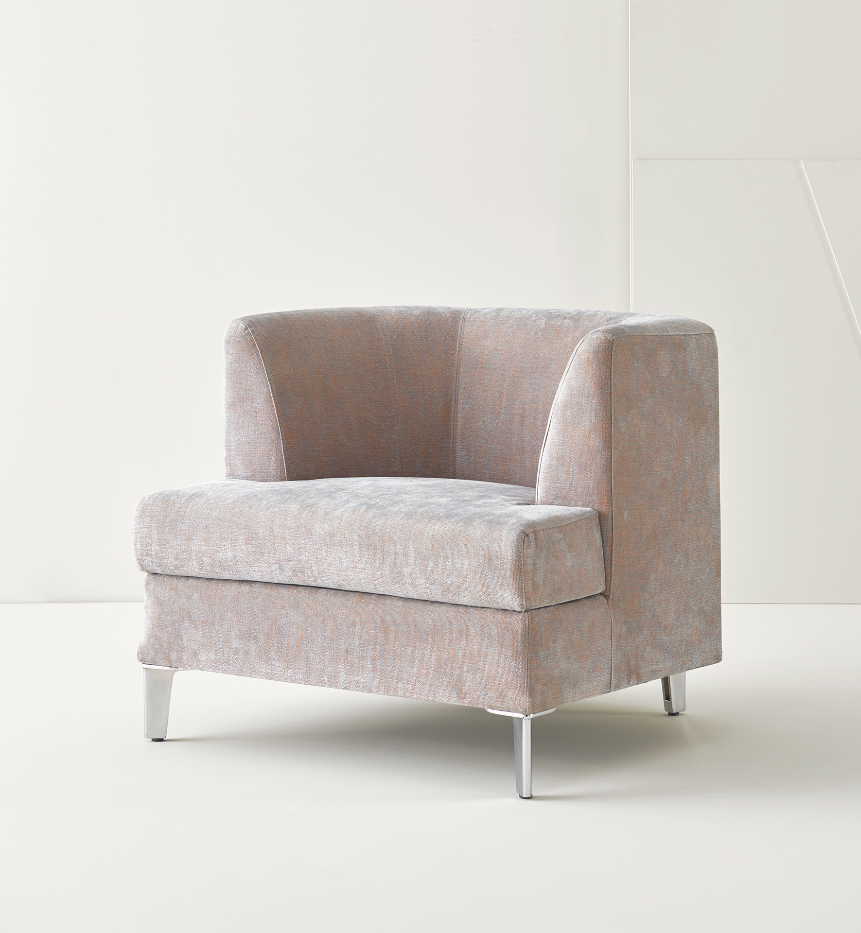 Cosy is a range of upholstered pieces designed to create an environment where one feels deeply at ease without renouncing resistant materials. Multi-ply plywood frame, aluminium die-cast legs, and soft coverings in fabric, leather or faux-leather.
