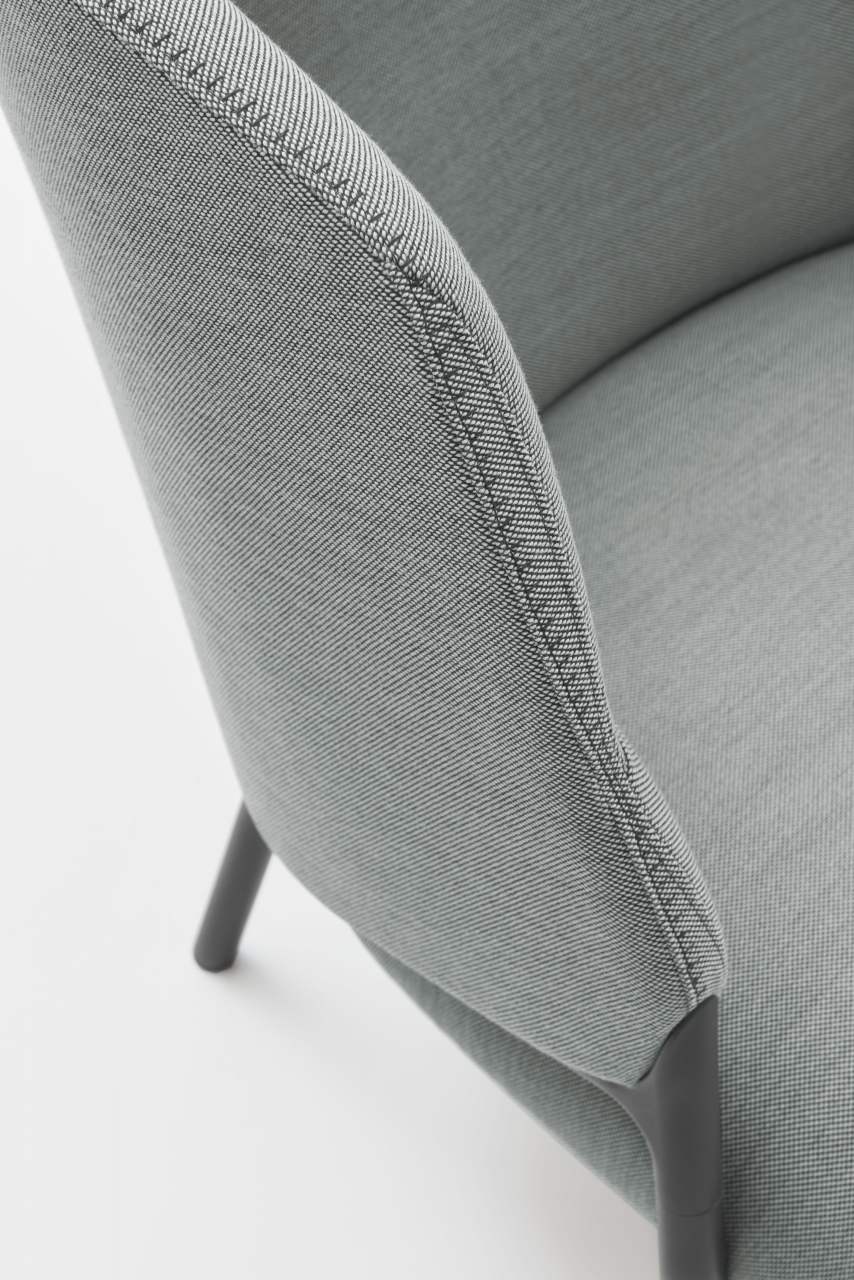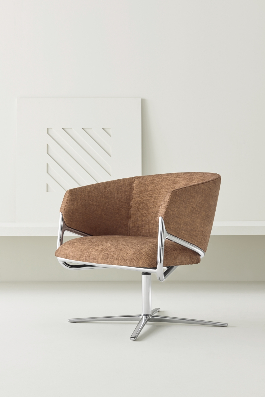 A die-cast aluminum element joins the front legs and circular structure; a detail that for its originality and appeal inspires the name of the collection. The Hammer lounge chair is available with a low or high back, thus fulfilling synergistic needs. Its variety makes it perfect for any environment, from contract to home, from hotel room to meeting room... elegant in every situation.