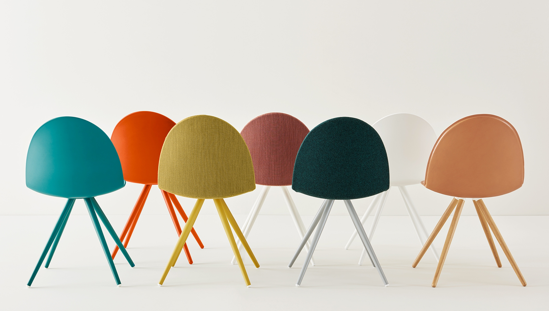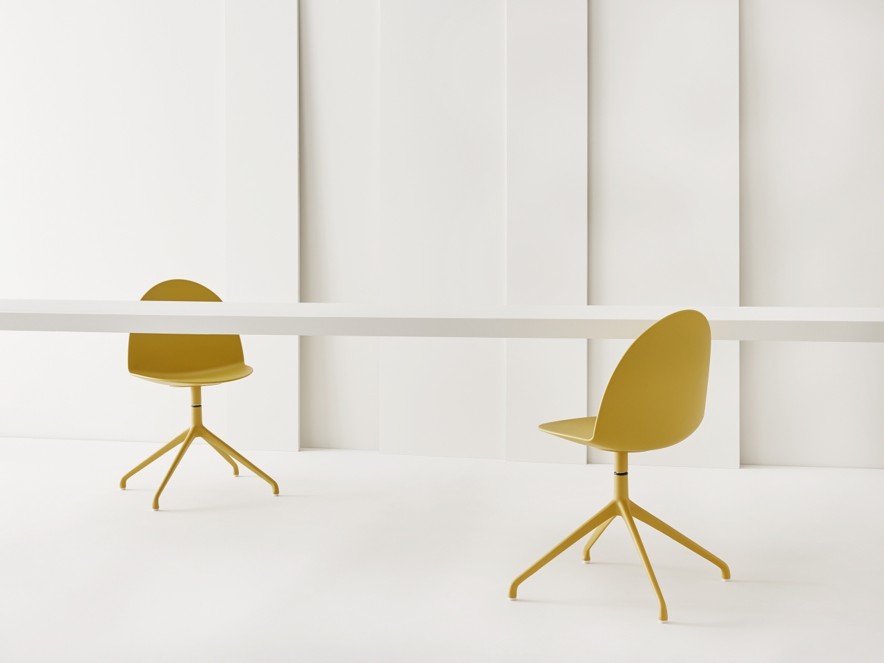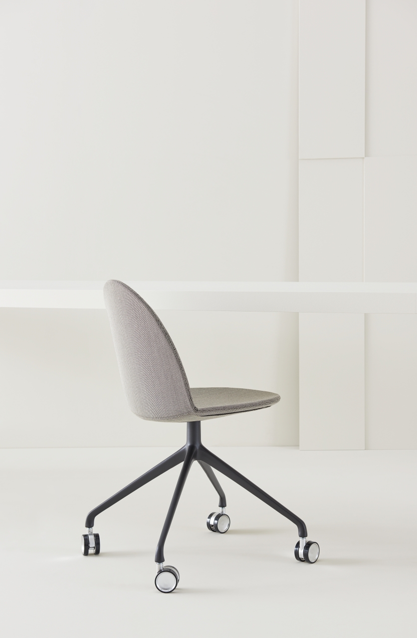 An eclectic collection of seating with delicate soft designed lines, comfortable in a variety of applications. The shell, in polypropylene or upholstered, is combined with numerous bases and multiple seating for meeting, dining or public waiting environments.