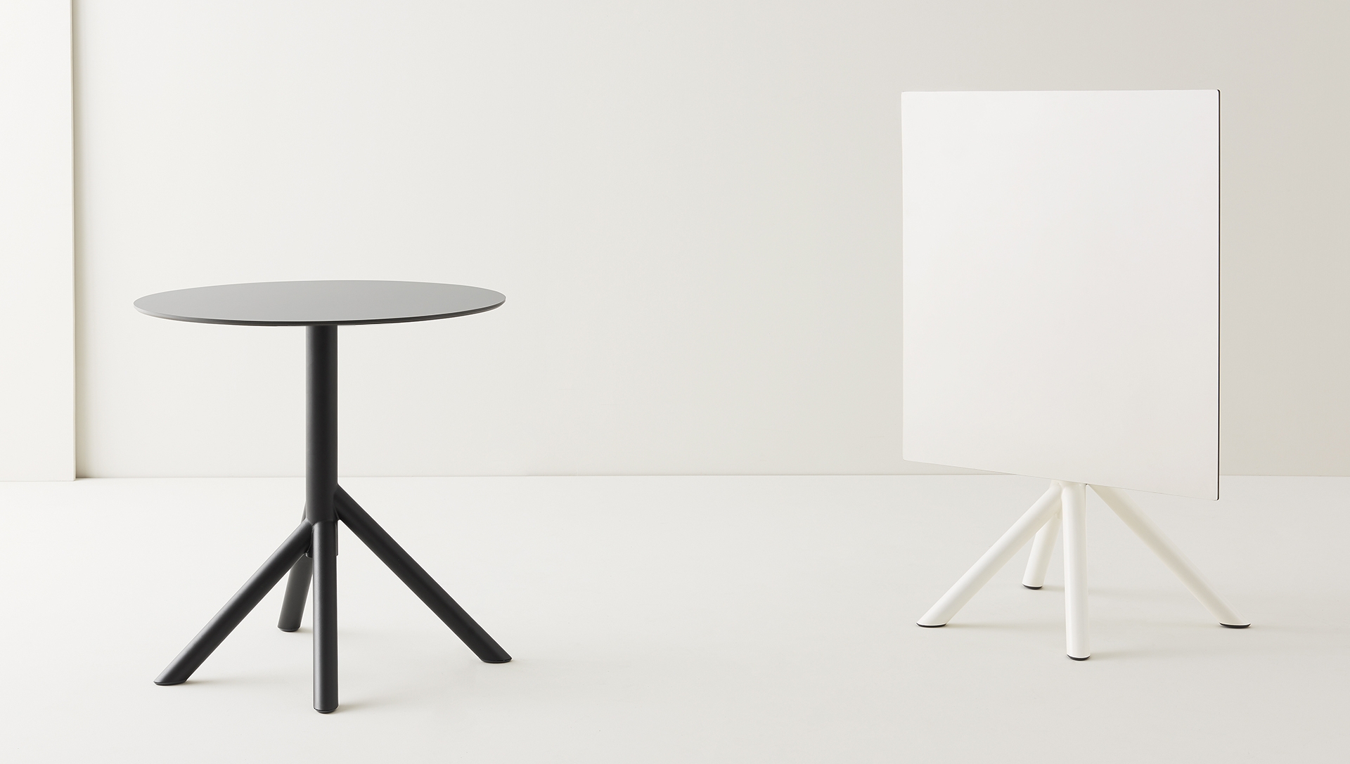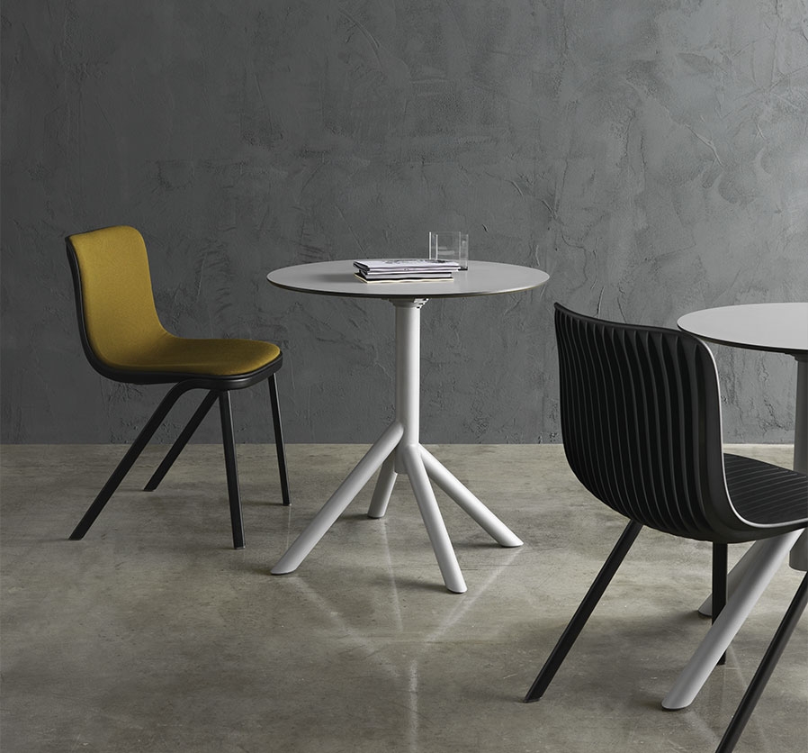 Solid base and folding top make Juxt ideal for spaces where tables need to be opened then closed for storage. A versatile product, it can be stacked and has the option of either square or round top.