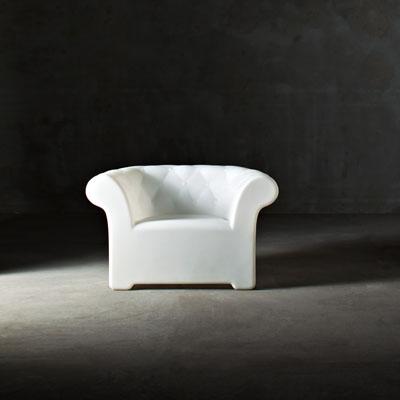 The initial concept was very clear: that of creating comfortable and functional outdoor sofas. Synergy between design and shape was made possible thanks to the know-how of the Serralunga company that, through rotational technology, created an evocative shape able to retain special features, like the padded effect, of the original English armchair.