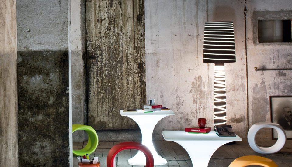 Lady Jane, Lady Mary and Miss Jane floor lamps belong to a collection of Italian furniture featuring a lacquered surface decorated using a special engraving method invented by Serralunga to create an astonishing effect of light and shade that is one of its kind.