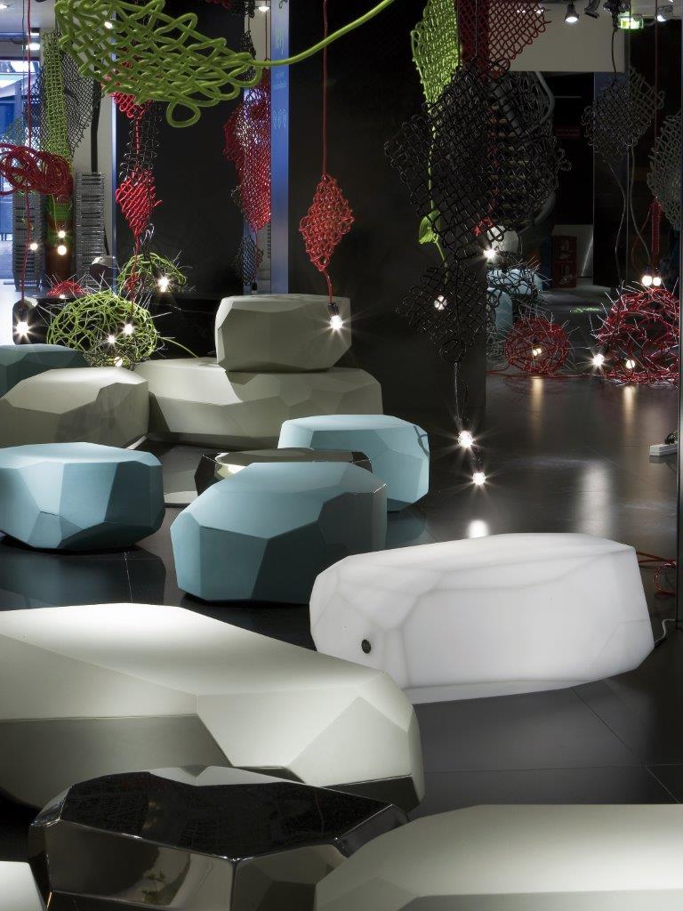 "The ""METEOR"" garden bench family, designed by Arik Levy, is a sort of alien homedecor item, fallen to Earth, a redesign of the typical natural stone found in the landscape, now taken and transformed into an object of the domestic and urban landscape.