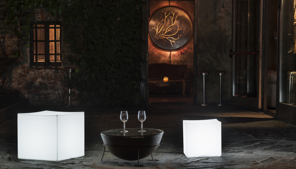 Starting with the simplest and most defined of shapes, the cube, functional garden furniture solutions have been studied, in order to transform a fixed, immovable object into a dynamic, functional product. The cube was designed explicitly as a seat, ideal for satisfying the need for extremely practical patio furniture for outdoor use. In particular, the Lounge Cube Collection, which includes cubes of two different sizes, enriches the company’s luxury furniture product line designed specifically for the garden. The seat, which is slightly curved inwards, gives softness to a rigid form. Moreover, in the illuminated version, the light coming from inside gives the cube a certain lightness.