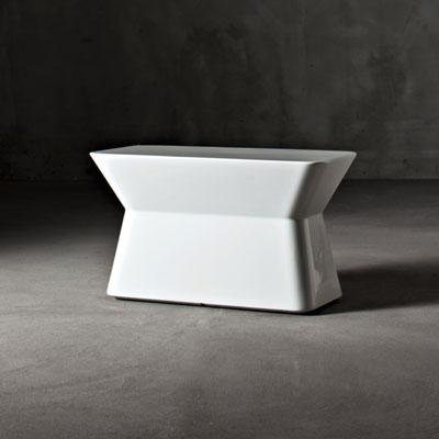 Pyramid shapes merge together to create rectangular garden tables with rounded edges.