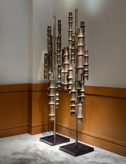 Glass spheres of various colours, finely worked, shape the light through transparency.