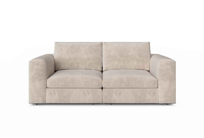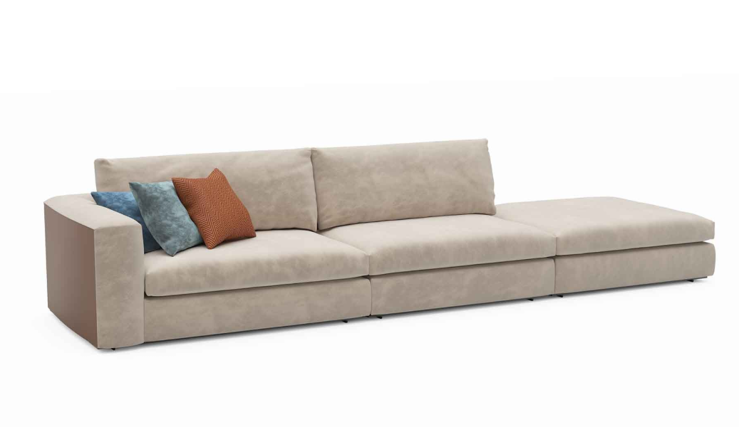 Sofa , frame made of solid timber and plywood. Polyurethane foam padding. Solid timber armrest, moka finish