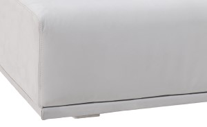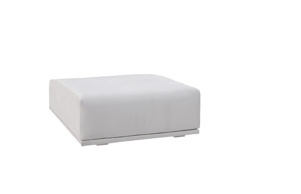 Pouf imbottito fisso, cuscino a densità differenziata e sfoderabile.