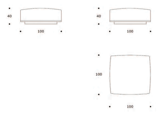 Dimensioni: larghezza 100 cm, altezza 40 cm, profondità 100 cm.
