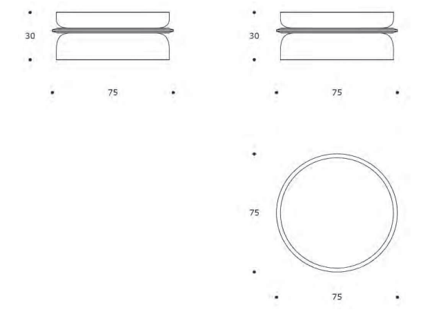 Dimensioni: larghezza 75 cm, altezza 30 cm, profondità 75 cm.