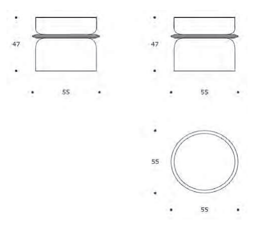 Dimensioni: larghezza 55 cm, altezza 47 cm, profondità 55 cm.