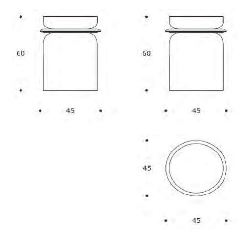 Dimensioni: larghezza 45 cm, altezza 60 cm, profondità 45 cm.