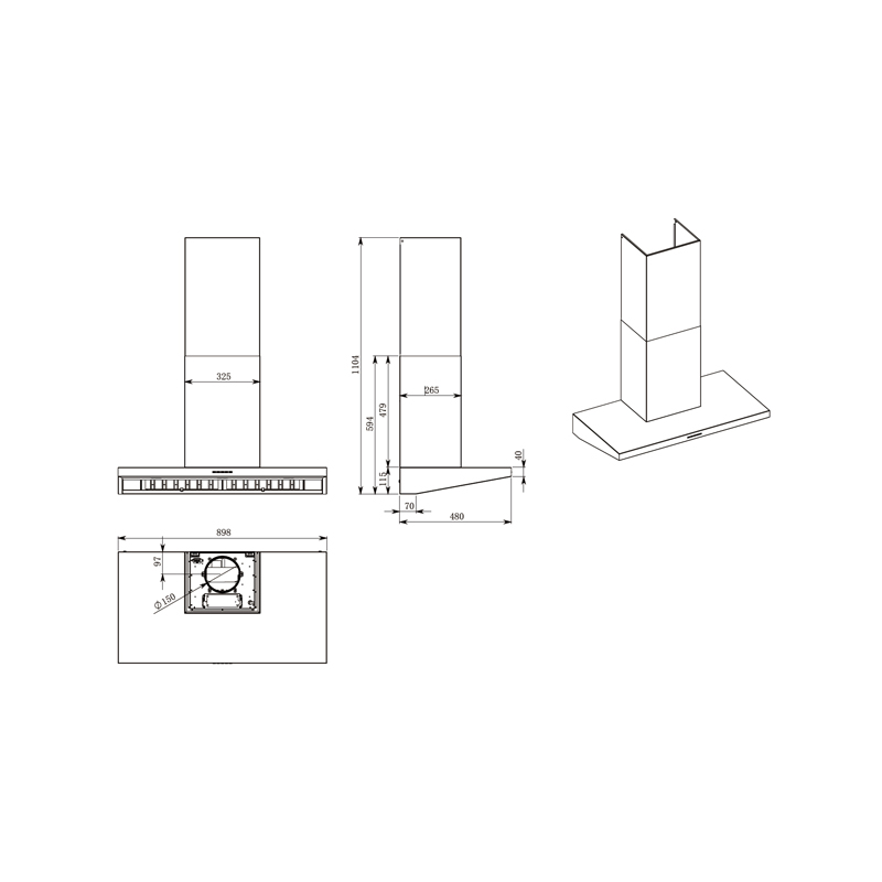 90 cm 中式抽油煙機(jī),拉絲不銹鋼